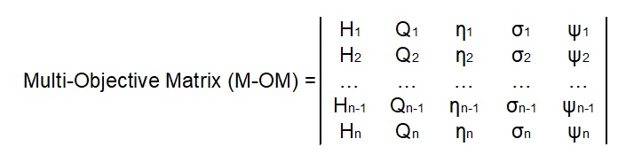 This complex design target is determined by the Multi-Objective Matrix (M-OM): a set of desired turbine performance parameters including hydraulic efficiencies, power, cavitation, and draft tube stability factor for operating points which are defined as the design target.